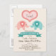 Boy & Girl Twin Pink & Aquamarin Elephants Kinderd Einladungspostkarte