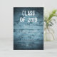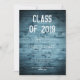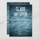 High School Abitur Party-Design für Jungen mit den Worten, in Not geratenen Schriftart, "Class of 2019", gegen blaues Bild von rustikalen Holzstruktur. Einfach mit Ihren Feierlichkeiten, Schriftart und Farben anpassen.