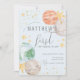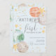 Adorable Raum Geburtstagseinladung mit pastellfarbenen Planeten, Mond, Sternen und Imitaten goldenen Akzenten. Ideal für ein Party mit dem Thema Weltraumgalaxie eines Jungen.