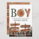 Rustikale Kiefernbäume und Holzjunge Babydusche Einladung.
