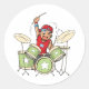 Dieses Design ist ein Junge, der Schlagzeug spielt. Der Junge trägt Rot und spielt die Trommeln wirklich hart. Dieser Junge, der Schlagzeug spielt, sieht auf diesen Stickern großartig aus