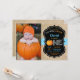 Boy Pumpkin Erster Geburtstag Einladung mit individuellem Foto, Orange und Blau, Kalkboard und Burlhintergrund. Für weitere Anpassungen klicken Sie bitte auf die Schaltfläche "Anpassen" und verwenden Sie unser Designwerkzeug, um diese Vorlage zu ändern.