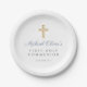 Personalisierter Junge Religious Cross Dusty Blue Erste Kommunion Papier Teller. Teil der Dusty Blue Script Cross Boy First Communion Suite mit passender Einladung, Schreibwaren und erstem Communion Party Zubehör.