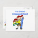 Niedliche Strichmännchen-Schule und Lesesaal, die das Lesen bei Kindern fördert, mit einem Strichmännchen-Jungen mit einem Haufen von Büchern und Text, der lautet: "Ich bin klug, weil ich lese!". Macht ein tolles Geschenk für jedes Kind und kann vor Ort mit einem Namen oder anderen Text angepasst werden!