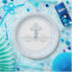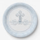 Junge Taufpapier-Teller mit hübschem Perlenwirbelkreuz auf blauem Damast-Hintergrund. Diese eleganten blauen Taufpapier-Teller lassen sich einfach durch einfaches Hinzufügen von Texten anpassen. Sie können auch das Kreuz nach Bedarf auf diesen blauen Taufen, Taufen und ersten kommunion Papier Tellern bewegen.