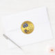 Junge Wirbellose tragen Babyduschkleber mit einem hübschen Teddybär und hübschen königsblauen und goldgelben Ballons auf einem schönen goldenen Hintergrund. Die Babyduschkleber für Teddy-Bären sind leicht an den von Ihnen gewünschten Text angepasst.