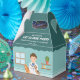 The illustration is placed near the bottom of the box against a vibrant teal background. The top area provides space to personalize the event theme and add a thank you message, making each box a special treat for your guests.