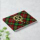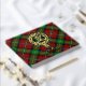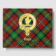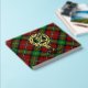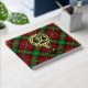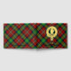 Clan Boyd Wappen Abzeichen umgeben von einem Gurt und Schnalle über Tartan Hintergrund. Benutzerdefinierter Vorder-, Rücken- und Rückentext.
