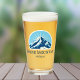 Beer glass from Boyne Mountain Michigan with a gorgeous blue mountain with a sunny background and the option to add text.