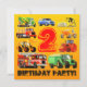 Neun farbenfrohe LKWs umgeben eine große Zahl 2! Füge dein eigenes Alter hinzu! Ein grüner und gelber Zementmischer, blauer Pick-up-LKW, gelber Bulldozer, orangefarbener Müllwagen, rote Straßenwalze, grüner Traktor und Anhänger, großer roter Feuerwehrwagen, gelber Grabmesser und ein roter LKW-Bauer! Alle Arten von Transport, die großen Lastwagen, die Kinder Liebe! Perfekt für Ihren 2 Jahre alten Feuerwehrwagen, Bagger, Lastwagen oder Traktor am 2. Geburtstag. Wunderbar für Ihr 2jähriges Truck Party. Moderner Kinderbau und LKW Thema Geburtstagsgeschenke, Accessoires, Gastgeschenken und Geschenke. Alle LKW-Illustrationen ©Paul Stickland
