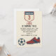 A lively, contemporary soccer-inspired design that blends bold blue and red accents with playful athletic elements, creating an energetic vibe perfect for young sports fans. The overall look feels bright, modern, and full of motion—ideal for kicking off a fun, game-day-style celebration.