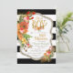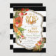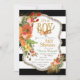 Hirsche Antler Babydusche mit Aquarellfarben-Blume und goldenen Glitzer- und Folienakzenten auf schwarz-weißem Hintergrund.