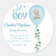 Herzlich willkommen in unserem Boys Bear Blue Balloon Eucalyptus Baby Shower! Feiern Sie die Ankunft unseres kleinen Freudenbündels mit diesen bezaubernden klassischen Rundaufklebern. Mit einer charmanten Illustration eines kuscheligen Bären, einem fröhlichen blauen Ballon und zarten Eukalyptus-Blätter fügen diese Aufkleber Ihren Babyduschdekorationen eine Touch Whimsy hinzu.