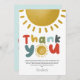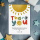 Celebrate your little boy’s first birthday with this sweet and whimsical portrait thank you card design! Featuring a cheerful sun and the phrase “First Trip Around the Sun,” this vertically oriented 1st birthday thank you card includes space for a heartfelt message. The back showcases matching typography and a soft blue sky background for a bright, coordinated finish. A sunny and thoughtful way to thank friends and family for joining your baby boy’s first big celebration!