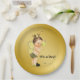 Jungen duschen Bienen Babydusche Papier Teller mit bezauberndem dunkelhaarigen brünetten Baby-Junge mit einem niedlichen Hummeloutfit auf einem goldenen Hintergrund mit fliegenden Hummeln. Sie können Text hinzufügen, um diese schwarzen und goldenen Bienenduschpapier-Teller zu personalisieren, und Sie können den goldenen Hintergrund entfernen, um die Farbe Ihrer Wahl hinzuzufügen.