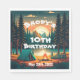 Dieses Camping Geburtstagsparty Serviette ist Set vor einer Kulisse von mächtigen Bäumen und majestätischen Bergen mit einem ruhigen Teich im Licht einer untergehenden Sonne. Das Bild vermittelt die Ruhe der großen Außenbereiche, wobei die grün-blauen Farbtöne nahtlos harmonisch harmonieren, um eine friedliche und einladende Atmosphäre zu schaffen. Ein kühner, auffälliger Schriftart lädt zum Geburtstagsabenteuer unter den Sternen ein. Mit seinen beeindruckenden Bildern und seinem eleganten Design verspricht diese Papierserviette ein unvergessliches Erlebnis inmitten der majestätischen Natur.