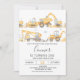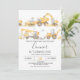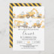 Boys Construction Vehicles Geburtstag Einladung Niedlichen kleinen Jungen Bautheorie Geburtstagseinladung mit verschiedenen LKWs und Baufahrzeuge in zwei Reihen an der Spitze des Designs.