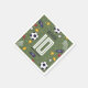 These cool and modern soccer-themed kids napkins feature a vibrant green background with playful illustrations of a football (soccer ball), trophies, stars, goals, and soccer boots. Personalize the text to suit any age. Perfect for boys’ soccer birthday parties!