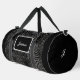 Diese leichte, kompakte und robuste Tasche ist für Abenteuer, Reisen und Fitness gedacht. Perfekt für Geschenke und genau richtig für unterwegs. Finden Sie Ihren jungfräulichen Instinkt und gehen Sie auf einem Pfad, Wandern oder Radfahren. Genau das Richtige für einen Sportler, Fußball, Basketball, Fußball-Spieler, um Sportzubehör zu tragen. Eine speziell entworfene Duffle-Tasche mit schwingendem, windigem, lockiges weißes Muster auf schwarzem Hintergrund. Darüber hinaus kann es leicht mit Ihrem Namen und Monogramm personalisiert werden.