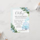 Niedliche Autoparade soziale Distanzierung oder Quarantäne Thema Babydusche Einladung mit einem blauen Auto, Ballons, Blume und tropisches Laub. Ideal für Jungen fahren mit Parade Baby Dusche Einladung für Quarantäne Zeit.