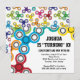 Einladungen für eine Fidget Spinner Thema Geburtstagsfeier. Alle Spinner können nach Belieben verschoben werden. Der Text kann auch verschoben werden. Klicken Sie auf die Schaltfläche Anpassen, um in den Bearbeitungsmodus zu wechseln, und verschieben Sie die Elemente entsprechend.