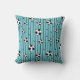 Schwarzweißbälle, Streifen und Punkte auf einem blauen Fußball-Kissen