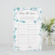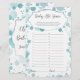 Diese Babydusche-Spielkarte verfügt über einen modernen Schriftart mit Drehbüchern auf dem Imitat in Aqua-Blau, ideal für eine Babydusche.
