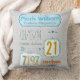 Baby Birth Record Keepake Birth Stats Pillow Personalisiert mit Baby Datum der Geburt, Gewicht, Länge, Wochentag und Zeit. Mit trendy Typografie und noch trendigeren Pfeilen.