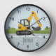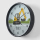 Diese niedliche und moderne Kinderuhr verfügt über eine gelbe Grabillustrierung (Bagger) und einen Platz, wo Sie Ihren Jungs Namen hinzufügen können. Ideal für jeden kleinen, der davon träumt, Baumeister zu sein! Mit klaren Zahlen ist diese Uhr ideal für ein Kinderzimmer, ein Spielzimmer oder ein Baby-Kinderzimmer.