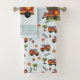 Dieses niedliche und moderne, blaue Handtuch-Set-Design verfügt über Feuerwehrillustrationen und ein Feuerwehrmuster, mit einem Feuerwehrwagen, einem Motor, einem Feuer, einer Katze in einem Baum und einer Leiter. Es gibt auch Platz für Sie, um Ihren Jungen Namen in einem einfachen Schriftart hinzuzufügen. Das perfekte Transport-Geschenk für jeden Feuerwehrmann!