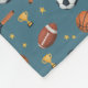 Diese niedliche, blaue Kinderdecke ist mit einem sportlichen Muster versehen, das Fußball, Fußball, Tennisschläger und -ball, Trophäe, Basketball und Sterne umfasst. Die Decke kann mit dem Namen und dem Monogramm Ihrer Jungs personalisiert werden. Das perfekte Geschenk für jeden Sportliebhaber!