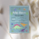 Dieses niedliche und rustikale Baby-Dusche-Einladungs-Design mit pastellblauen Dinosaurier-Cartoon, mit einem T-Rex, Stegosaurus, Regenbogen und Jurassic Dschungel-Pflanze, und kann mit den Namen der Eltern personalisiert werden und andere Details, die für Ihr Party erforderlich sind. Die perfekte Dinosaurier-Thematik, die zusätzlich zu der Babydusche für Paare mit Koch angeboten wird.