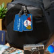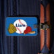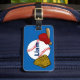 Perfekter Gepäckanhänger für Ihren kleinen Schläger. Dieses baseballbezogene Taschentag hat einen Baseballhandschuh, Baseballschläger und Baseballhut. Der Name des Jungen steht auf dem Baseball. Ein hellblauer Hintergrund macht es leicht zu finden.