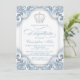 Prinztttaufen Einladung mit schöner Diamantenkrone und elegantem Drehbuch auf einem hübschen, blau-weiß-wirbelfarbenen Hintergrund. Diese elegante blaue Taufpause lässt sich leicht an Ihre Veranstaltung anpassen, indem Sie einfach Ihre Details in den Schriftart-Stil, Farbe und Wortlaut Ihrer Wahl einfügen.