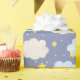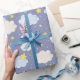 An Adorable Blue Striped Wrapping Paper Of Stars And Clouds For A Boys Baby Shower Gift