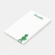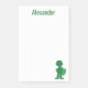 Boys Superhero Personalisierte grüne Silhouette Post-it Notes. Fügen Sie Ihren Namen zu der Spitze dieser lustigen Post, die es in fett, grün Schriftart notiert. Eine niedliche kleine Silhouette eines Superhelden, der ein hellgrünes Kap trägt und Stiefel trägt, befindet sich in der unteren Ecke des Papierpolsters. Superhero-Geschenk für Jungen. www.SamAnnDesigns.com