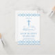 Diese 3,5" x 5" vertikale Taufe, oder Christening, Einladung verfügt über ein dunkelblaues und hellblaues, detailliertes Fretwork-Stil gemustert Kreuz mit einer passenden Grenze. Die Hintergrundfarbe und der Text können nach Ihren Wünschen angepasst werden. Eine perfekte Einladung für Ihren besonderen religiösen Anlass.