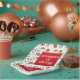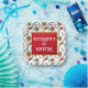 Set against a stark white background, this square paper plate features a bold Viking warrior mask, wooden shield, axe, bow and arrow, sounding horn and a ham. The white text templates are easy to read and customizable with your child’s name, age, and party details. And, the red inlay edged with faux gold makes the wording stand out against the seamless pattern