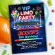 VIP Limo Geburtstagsfeier Einladung für Jungs und Mädchen mit leuchtenden Regenbogenfarben und Sternen.