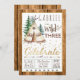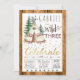 Wilde und drei Geburtstagsfeiern mit Tee und Bäumen auf rustikalem Holzfußboden. Diese niedliche rustikale Wildbahn und drei Stammesgeburtstage-Einladung lassen sich einfach durch das Hinzufügen von Details für Ihre Veranstaltung anpassen. Dies ist ein gedrucktes Design ohne echten Glitzer, Folie, etc.