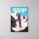 Bozeman Montana Skiposter in einem Vintagen, detailgetreuen Stil mit illustrierter Landschaft.