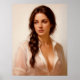 A captivating portrait of a woman with a long, elegant braid and a thoughtful expression, dressed in a soft, sheer white shirt. This image embodies natural beauty and quiet grace, perfect for art, apparel, and personalized items.