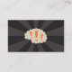 Visitenkarte mit einem Gehirn mit orangefarbenen Ausrufezeichen auf einem dunklen Sonnenbrust-Hintergrund.