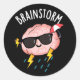 Brain Storm Funny Weather Pun Dark BG Runder Aufkleber