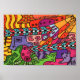 Wild abstrakte Folk Art Erforschung von Wahrnehmung, Täuschung, Gehirn und Gelände. Ursprünglich als Volkskunstwerk verkauft, schmückt dieses Bild nun dieses hübsche Mini Poster. Weiße Symbole und leuchtende Farben prallen in einem Cartoon-ähnlichen Kontext aus; es kann gerahmt sein, wenn Sie wollen.