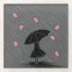 Brainstorm mit der Silhouette eines Mädchens, das während eines Sturms mit einem Regenschirm spaziert - mit Gehirnen.