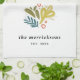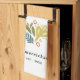 Gutes Küchentuch mit handgezogenen Botanikalen, individuelle Name und Details.