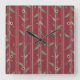 Branch of leaves on red wallpaper quadratische wanduhr
