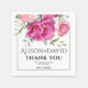 Zweige mit rosa rosa Blume und Typografie Hochzeitspapier Serviette. Diese edle Hochzeitspapierserviette besticht durch einen wunderschön gestalteten Zweig, der mit sanft rosa, rosa und salzgrünen Blume geschmückt ist. Die Namen des Ehepaares werden elegant in dekorativer Typografie präsentiert, was dem Design eine persönliche Touch verleiht. Zusätzlich ist eine herzliche 'Dankeschön' Nachricht enthalten. Das gesamte Design ist von einem zarten, dünnen Rahmen umgeben, der die Ästhetik insgesamt verbessert.