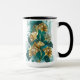 Branch with jewelry, gold and green leaves of Ginko biloba on light, painted green background. Ginko biloba